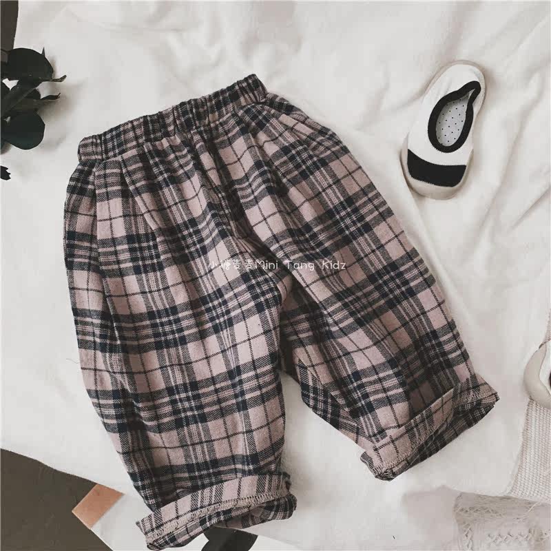 2019 autumn new children's Han Fan plaid neutral boys pants Girls clothes anti-mosquito pants loose pants women