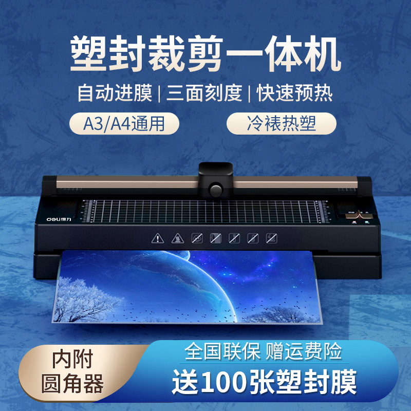 Deli 14377 Cutter Over plastic machine A3A4 photo sealing machine Office Commercial Household Small Laminating Machine Sealing Machine 3 inch 5 inch 6 inch 7 inch 8 inch film press Hot mounting laminating machine with paper cutting knife