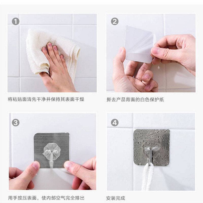 Sticky hook strong load-bearing seamless hook powder room punch-free kitchen hook stainless steel sticky hook 10 packs
