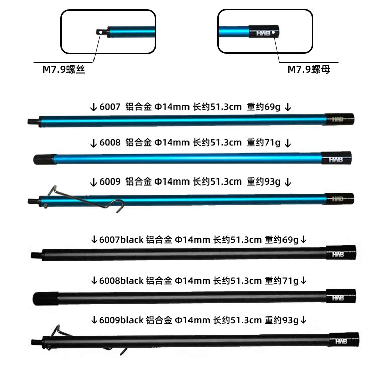 6007 color blue (about 40cm long) one 6007 black aluminum (about 30cm long) one 6009 black aluminum (about 30cm long) one 6007 black