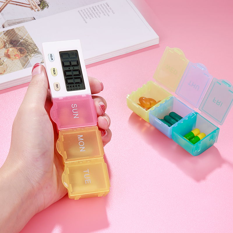 Single row of detachable smart medicine box (four-g color morning and morning) single row of detachable intelligent medicine box (7-g color week-long) intelligent timing medicine box