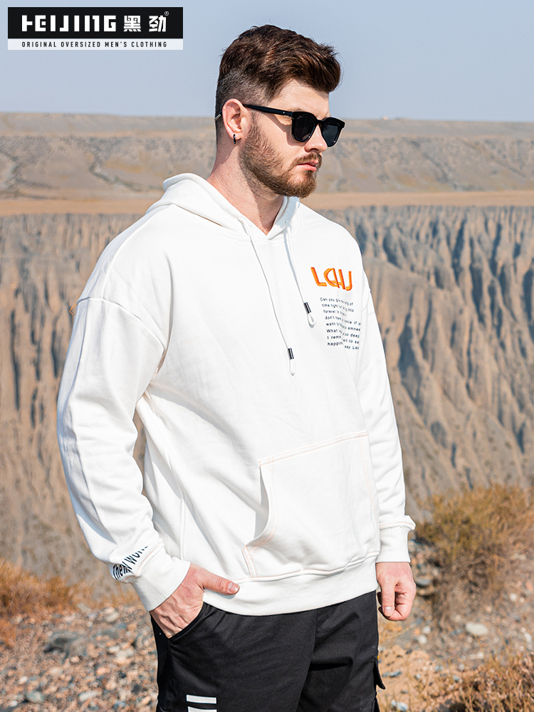 Heijin Fatty Hooded Sweater Trendy Brand Plus Size Men's Clothing Plus Size Loose Casual Round Neck Pullover Top Spring