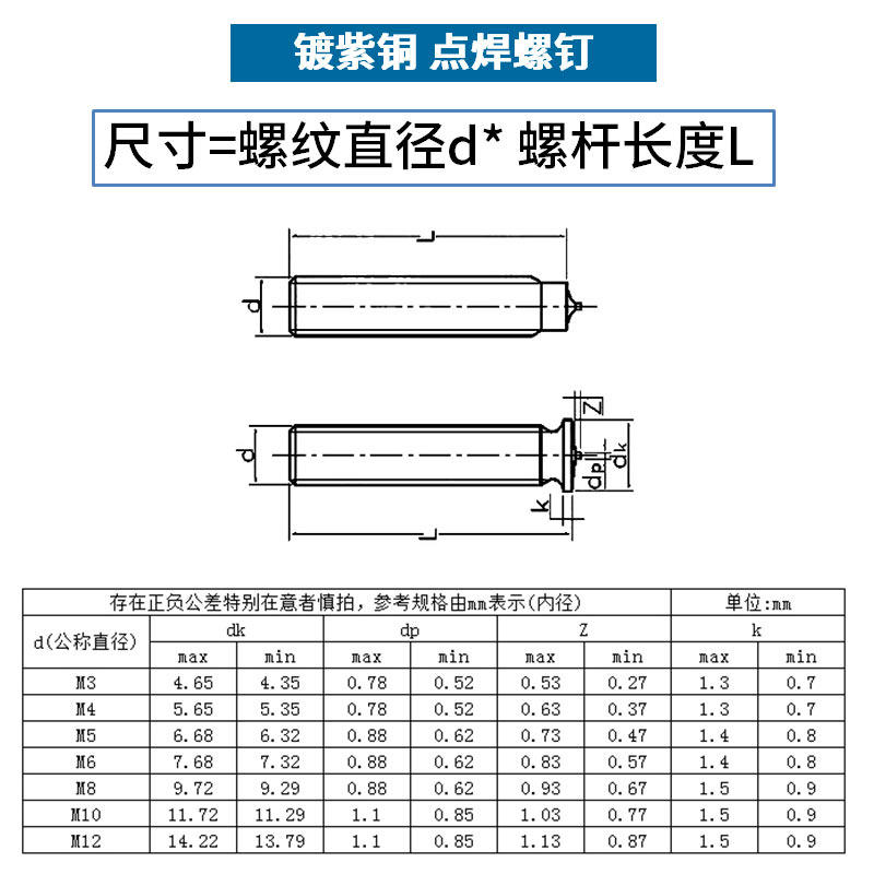 Copper plated spot welding screw welding screw plant welding stud welding stud spot welding column M3M4M5M6M8M10L