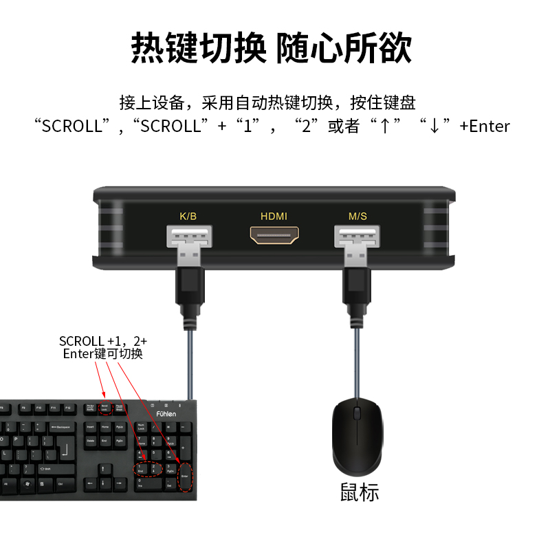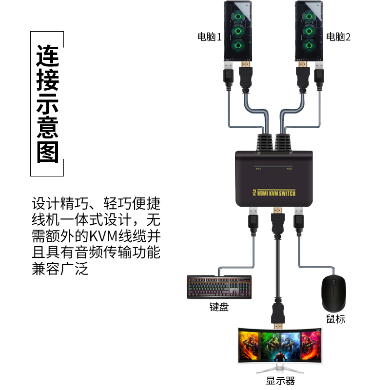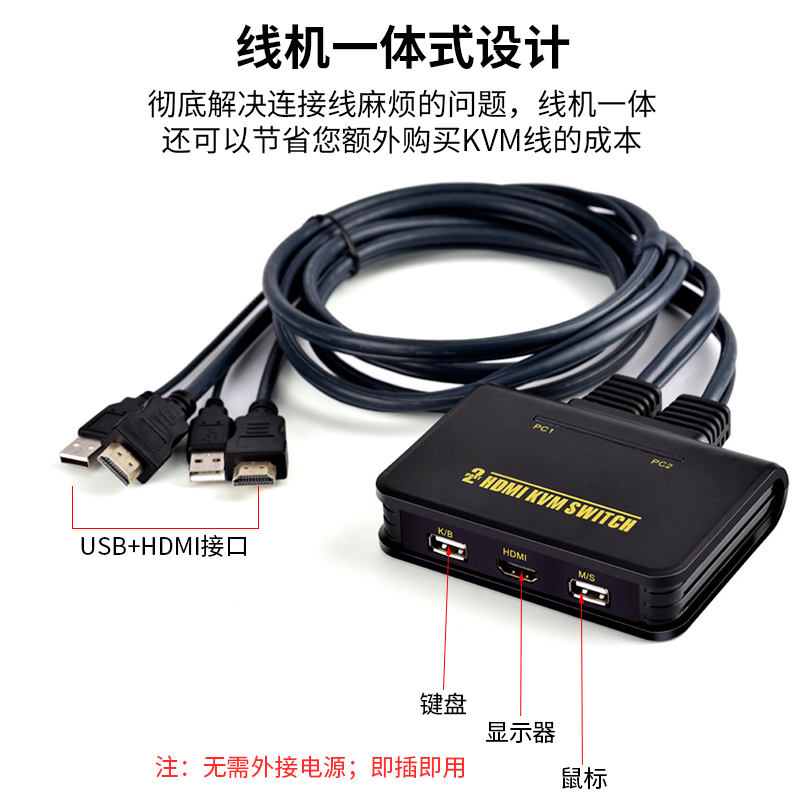 BOWU USB HDMI switcher 2 port automatic HDMI KVM 2 in 1 out KVM switcher HDMI switcher with line integrated keyboard hot key to switch co