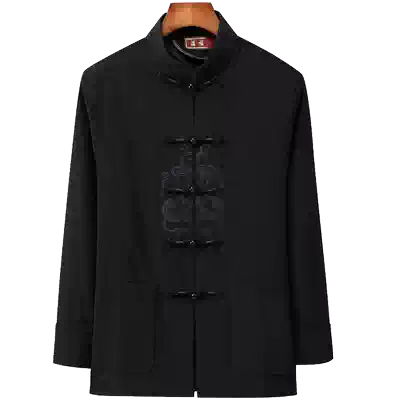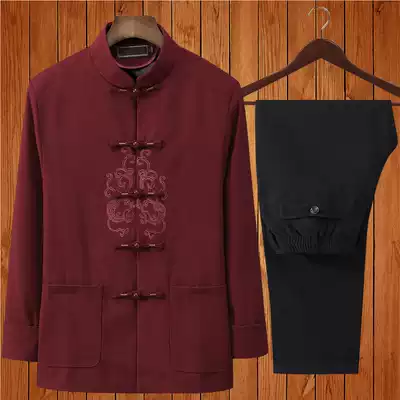 Spring and Autumn Winter, middle-aged and elderly people Tang suit men's long sleeve thickened suit Chinese style Chinese cotton linen Hanfu father suit