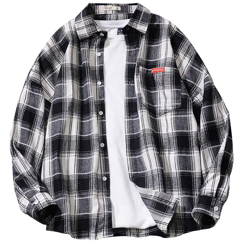 ins plaid shirt jacket man long sleeve Korean version trendy easy harbor wind lining now student eroy dress shirt