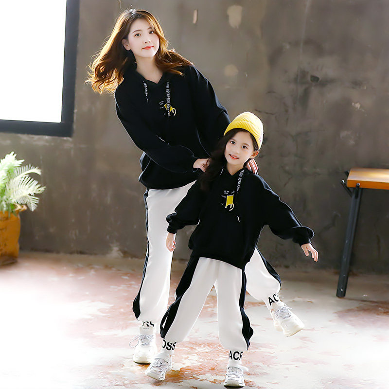 Parent-child outfit mother-daughter outfit Western style suit 2021 autumn new children's long-sleeved thick cotton T girls sportswear two-piece set