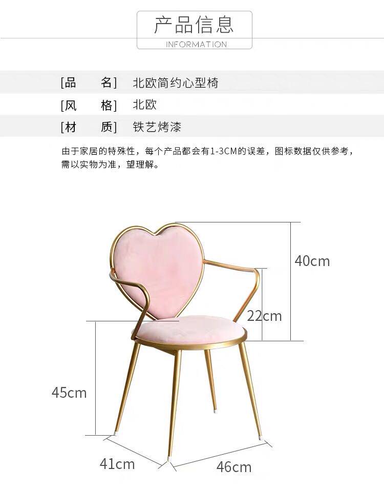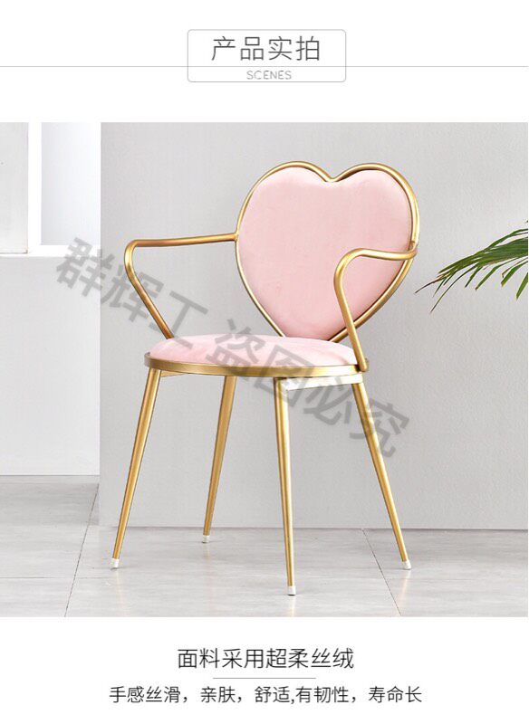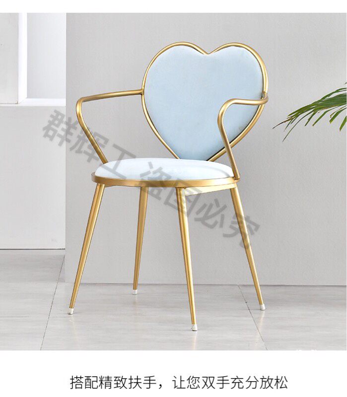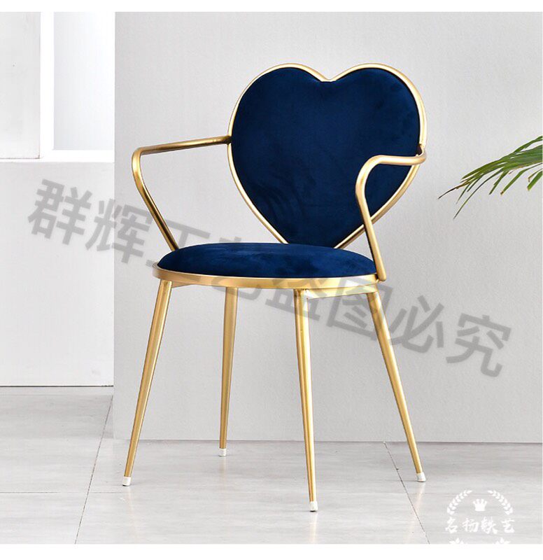 Nordic Creative Dining Chair Iron Art Heart-shaped Chair Beauty Chia Coffee Casual Chair Golden Makeup Table Chair Simple Suede Cloth Chair
