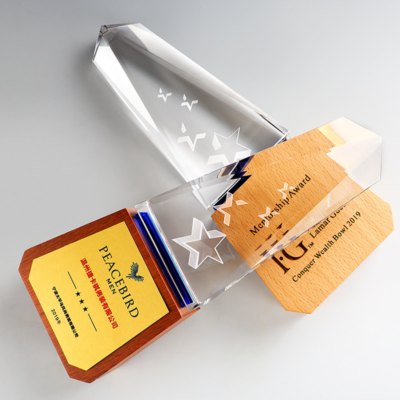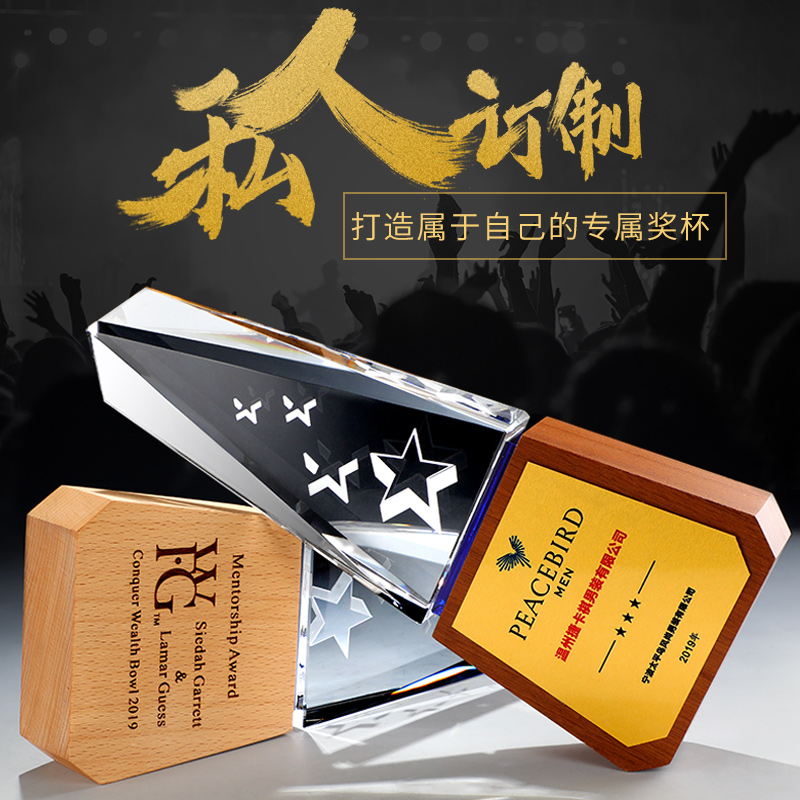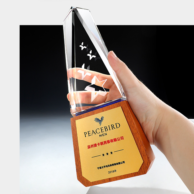 Creative crystal trophy customization Excellent staff award solid wood medal Dealer authorization card engraving honor to join the book