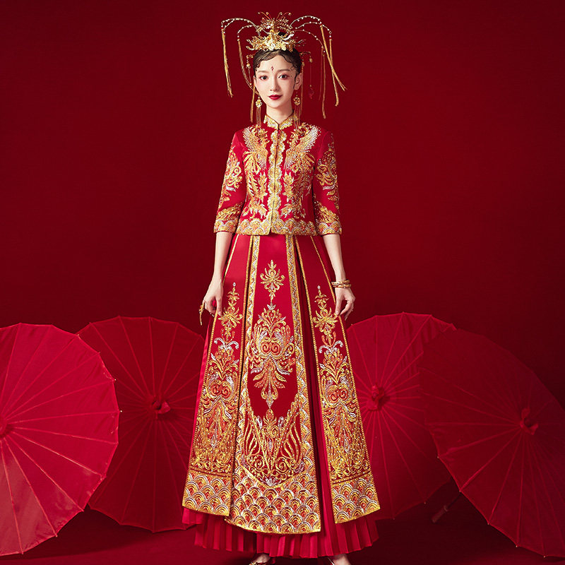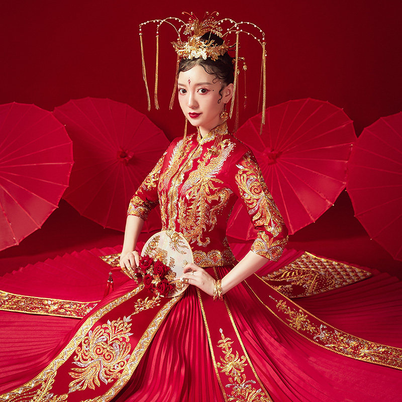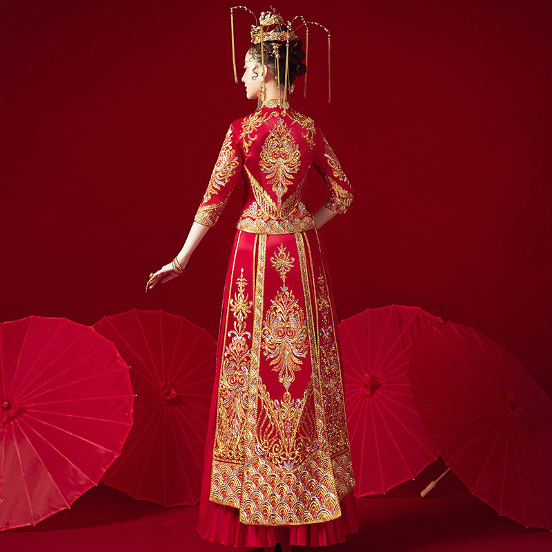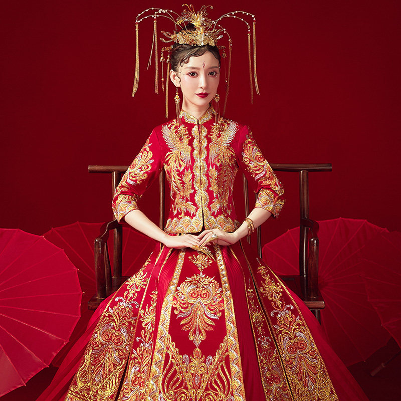Show and dress bride 2022 new wedding suit small child Chinese wedding gown wedding dress with a slim fit and slim fit
