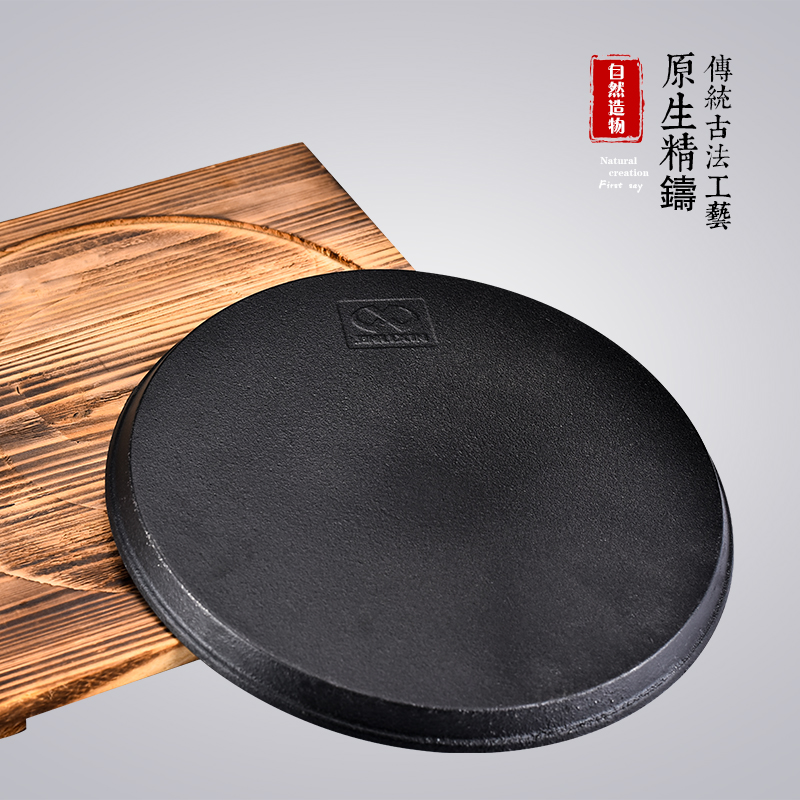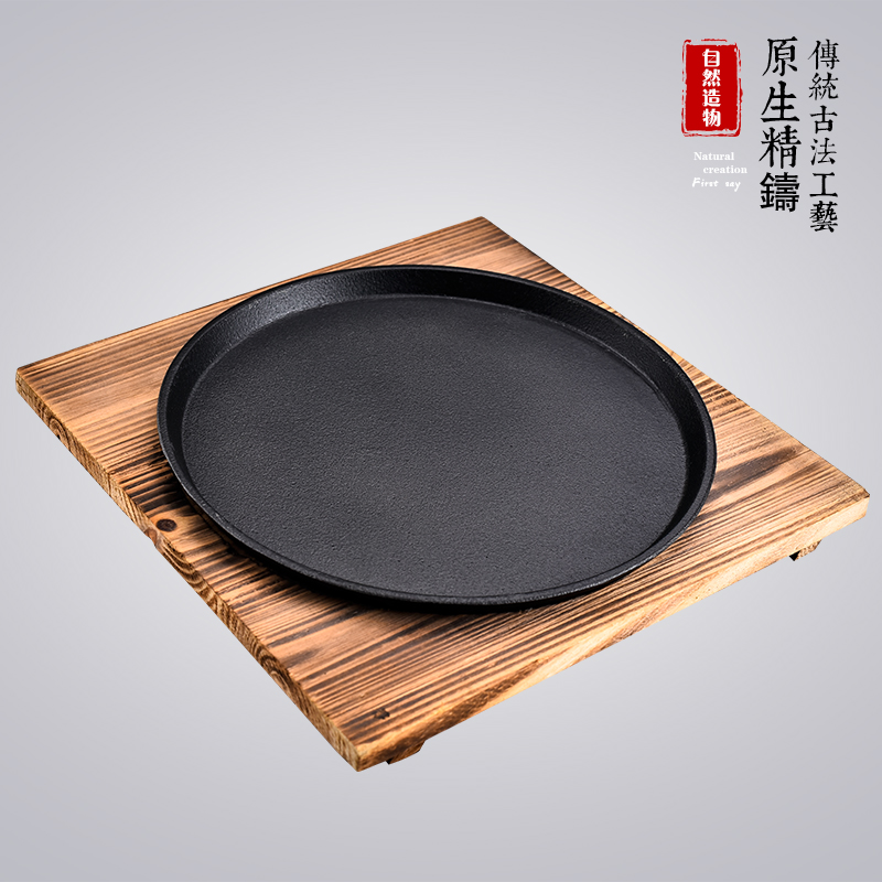 Square Carbon Burning Iron Plate Round Iron Plate Burning Pan Domestic Cast Iron Western Dining Steak Tray Barbecue Pan Fried Meat Hotel Commercial