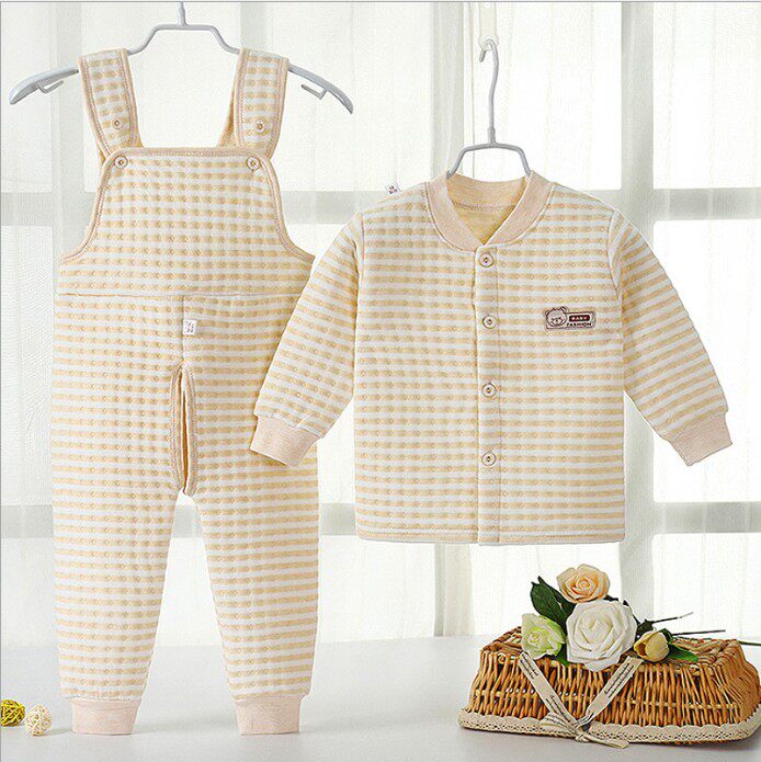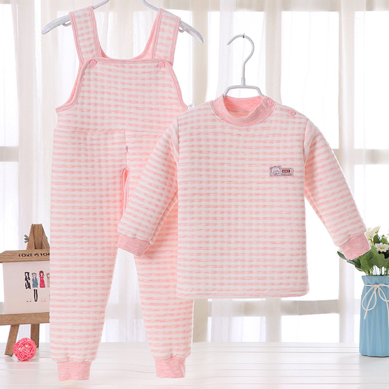 Autumn and winter children's quilted thickened three-layer thermal underwear suit boys and girls pure cotton cardigan bib overalls for big children
