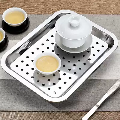 Modern minimalist stainless steel tea tray drain tray tea table household kung fu tea set rectangular trumpet filter tray