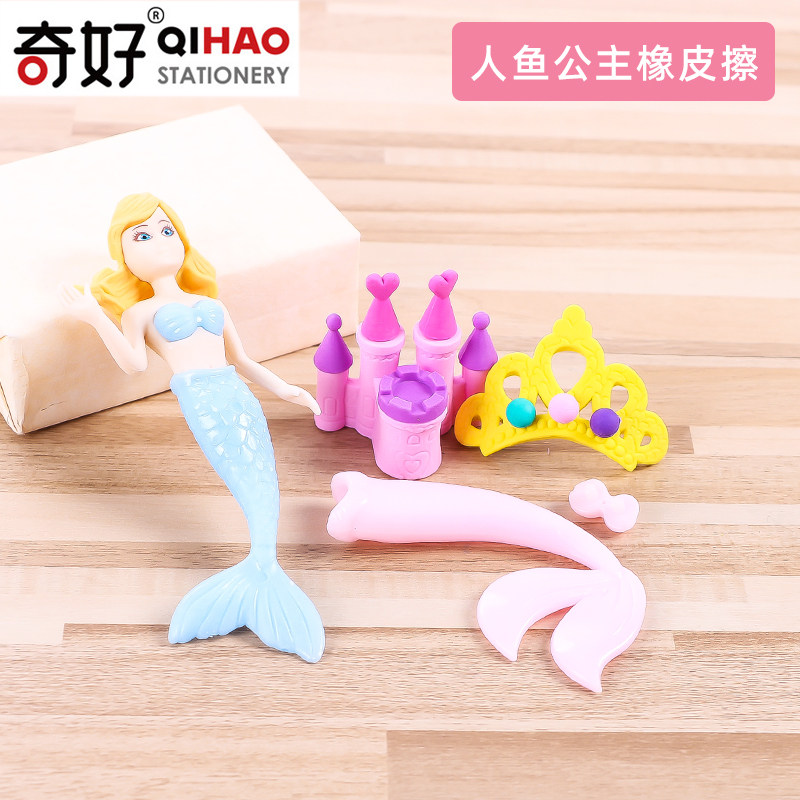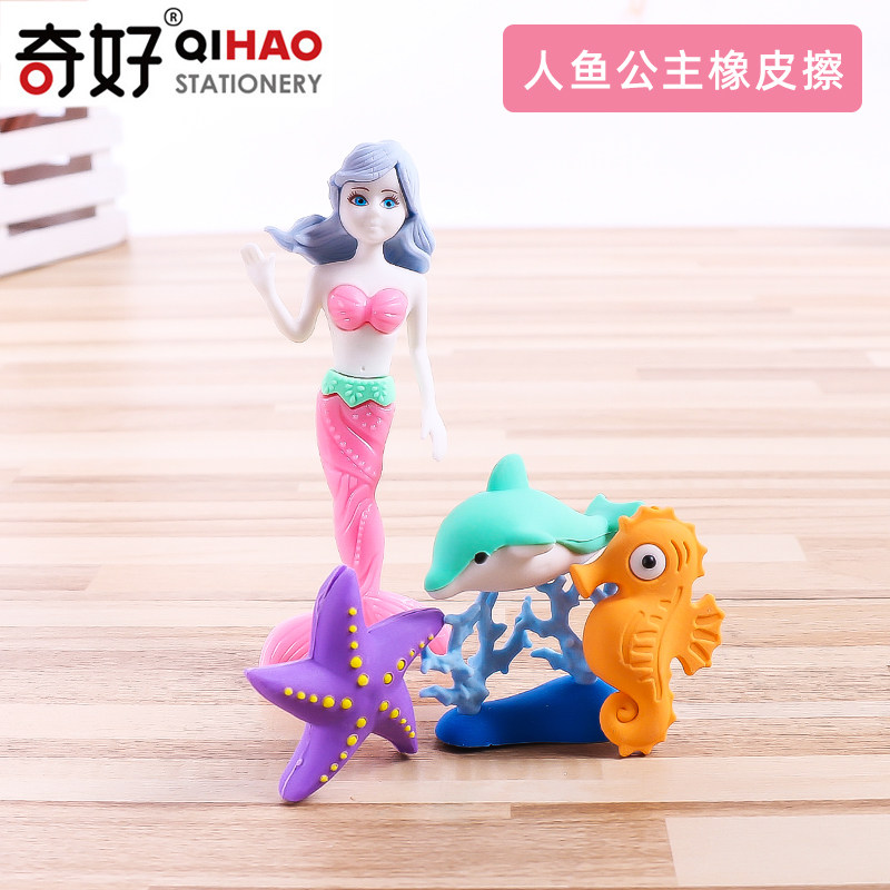 Chic Good People Fish Princess Rubber Erasers Schoolgirl Stationery Girl Children Pencil Wipe Can Be Assembled Fun Styling Mermaid Suit Dolphin Marine World Wipe Clean Children Gift Prizes