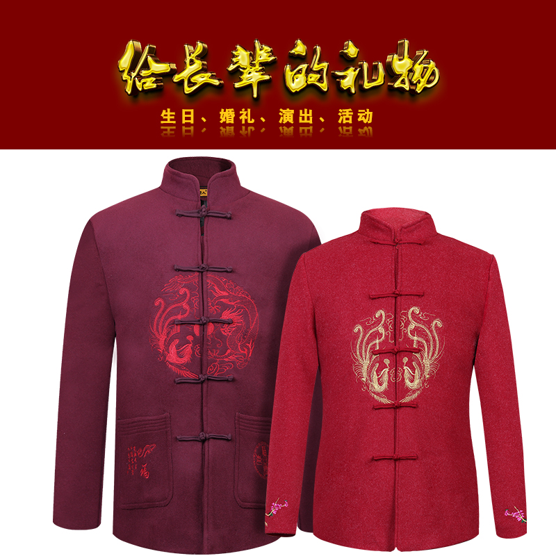Middle aged Tang Costume Men's Autumn Winter Fur Coats and Mom and Dad Emotional Lovers of the Elderly Wedding Grandparents Birthday of Grandmother's birthday