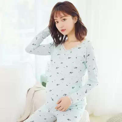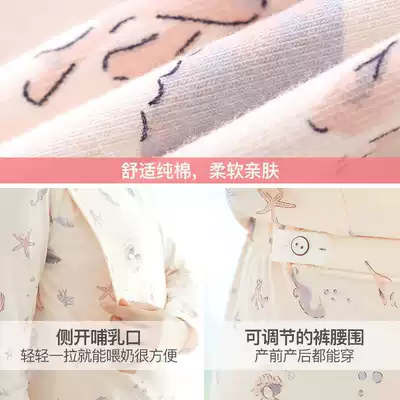 Pregnant women autumn clothes sanitary pants set pure cotton postpartum cotton thin section late pregnancy large size breastfeeding fever clothing winter