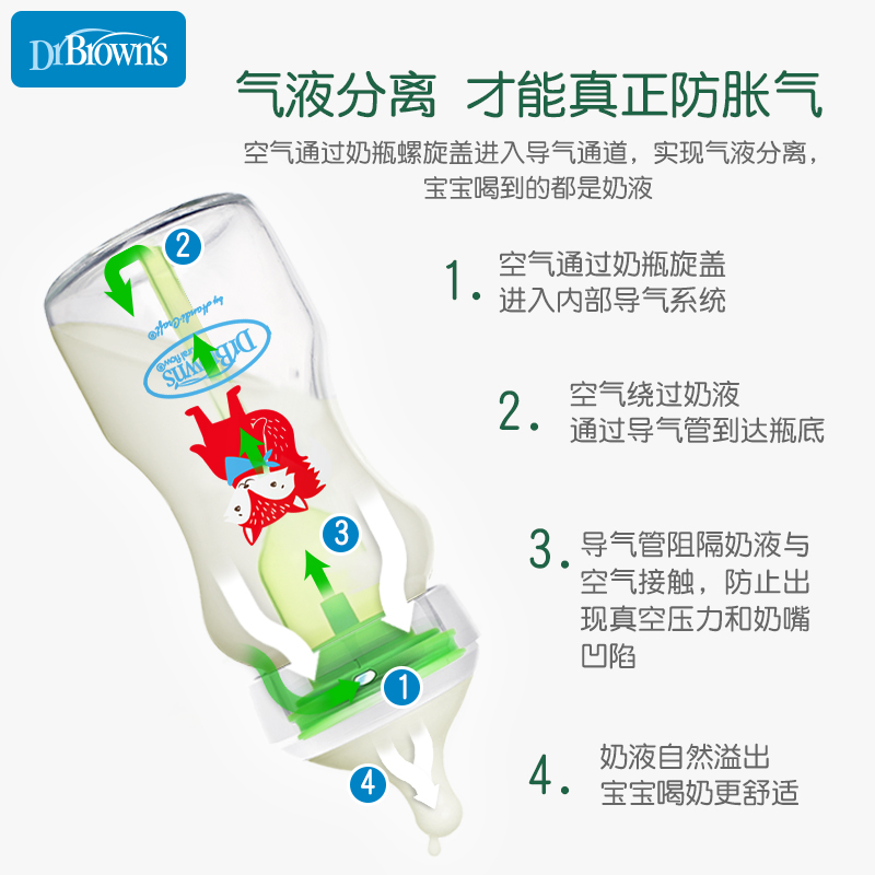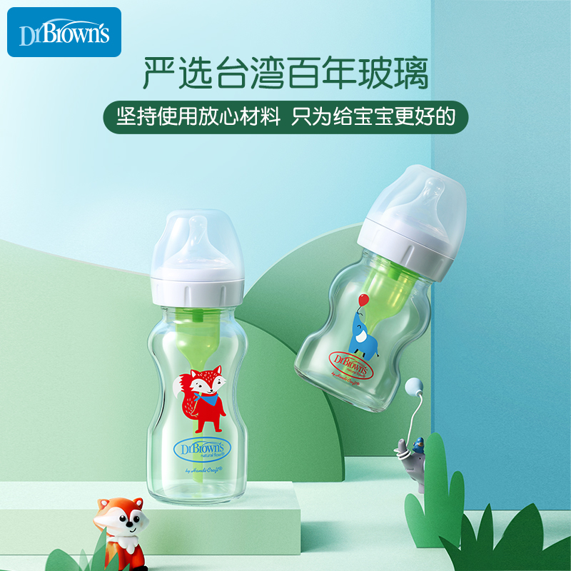 Dr Brown anti-flatulence newborn baby bottle Wide mouth glass Imitation breast milk weaning artifact Big baby 6 months