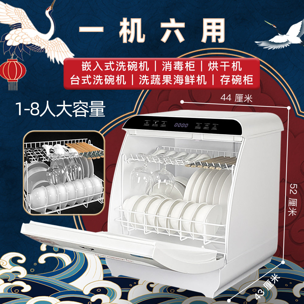 Deshi kitchen Q8 dishwasher 8 people set up and down double spray intelligent household automatic disinfection drying dishwashing machine