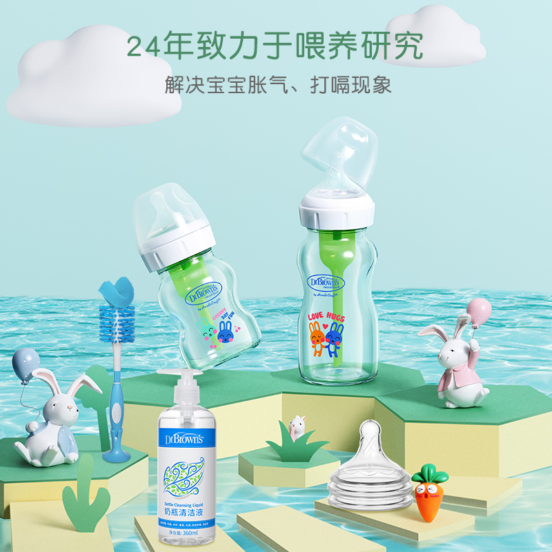 Dr Brown baby imitation breast milk anti-flatulence wide mouth glass bottle pacifier cleaning brush cleaning agent