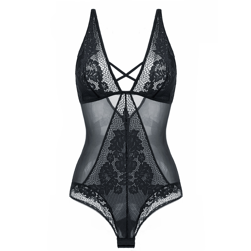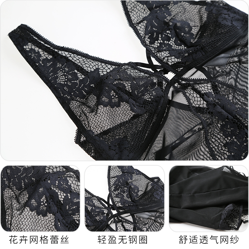 French sexy lace pajamas without steel ring transparent temptation thin lady conjunction lady conjunction lady deep V underwear