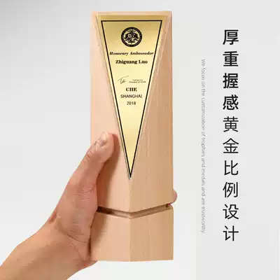 Crystal Trophy Medals Customized Creative Beech Wood Trophy Wooden lettering Stitching Year-end Trophy Customized