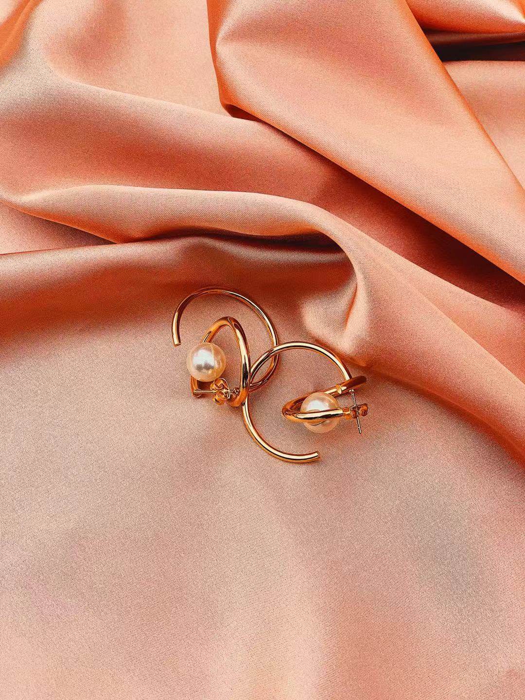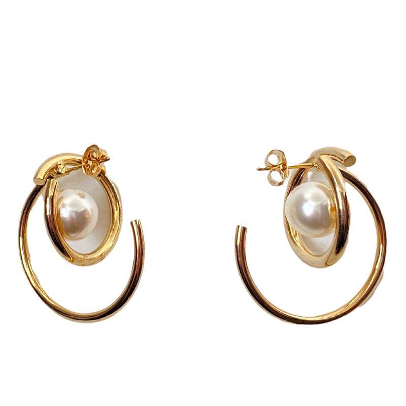 Domestic Spot South Korea European and American Wind Gold Plated Temperament Pearl Circle Earrings Dollskill
