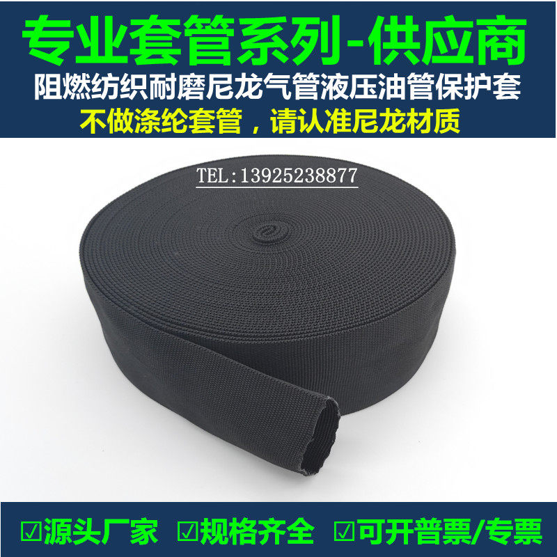 Black nylon hollow textile casing hydraulic pipeline pipe protective weaving casing weaving cord weaving nylon cloth
