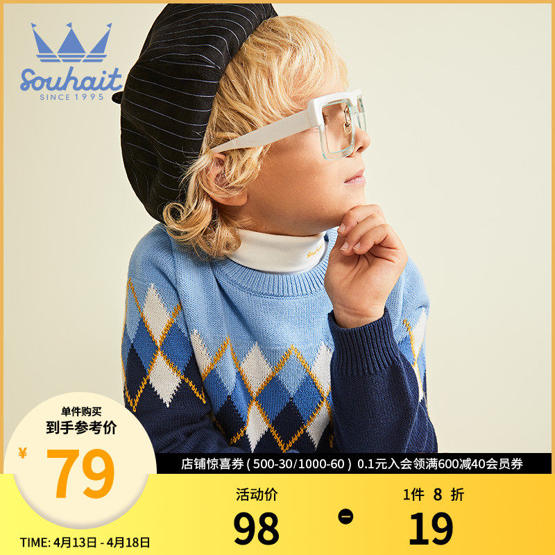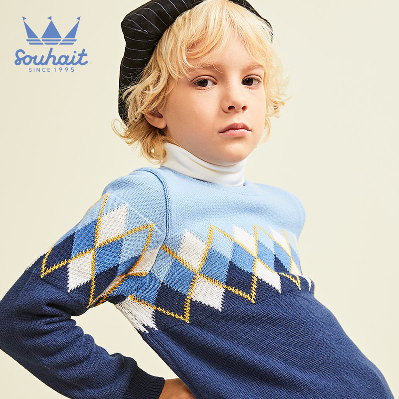 Water Chili Boy Clothing Boy Sweater 2022 Spring Clothing New Pint Comfort Breathable Round-Neck Jacket Head Warm Children's Blouse