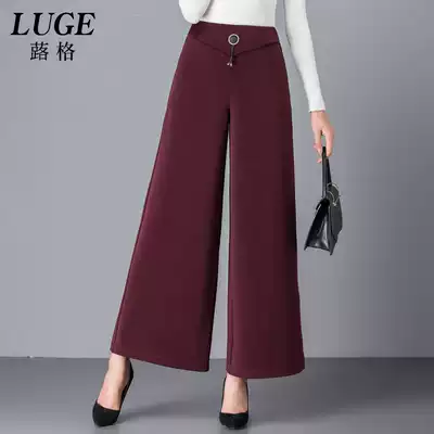 Dip feeling wide leg pants Women's Spring and Autumn New straight tube pants high waist feel nine-point skirt pants big size wide leg wide pants skirt