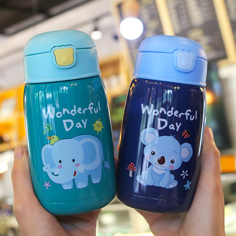 Cute thermos cup children's water kettle with straw for boys and girls kindergarten students 304 stainless steel dual-purpose water cup