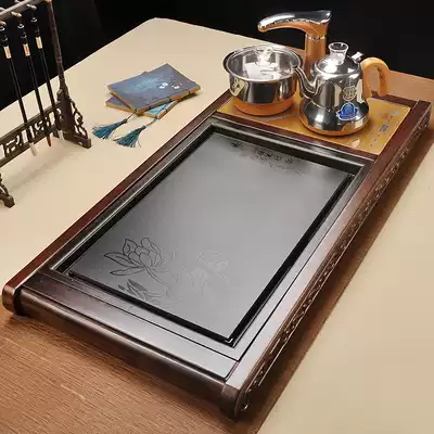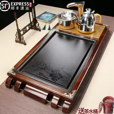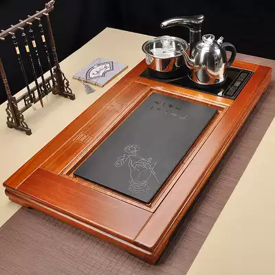 Fully automatic tea set set household kung fu solid wood pear chicken wing tea tray tea table integrated induction cooker water set