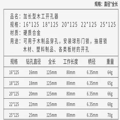 Woodworking drill, alloy extended threaded drill, pneumatic screwdriver, hexagonal handle, extended wooden door lock, plastic punching