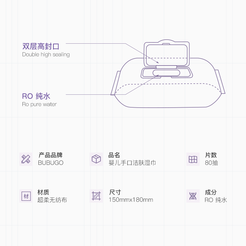 Bububugo wipes baby hand mouth special newborn big packaging special home bag 80 draw 5 pack with lid