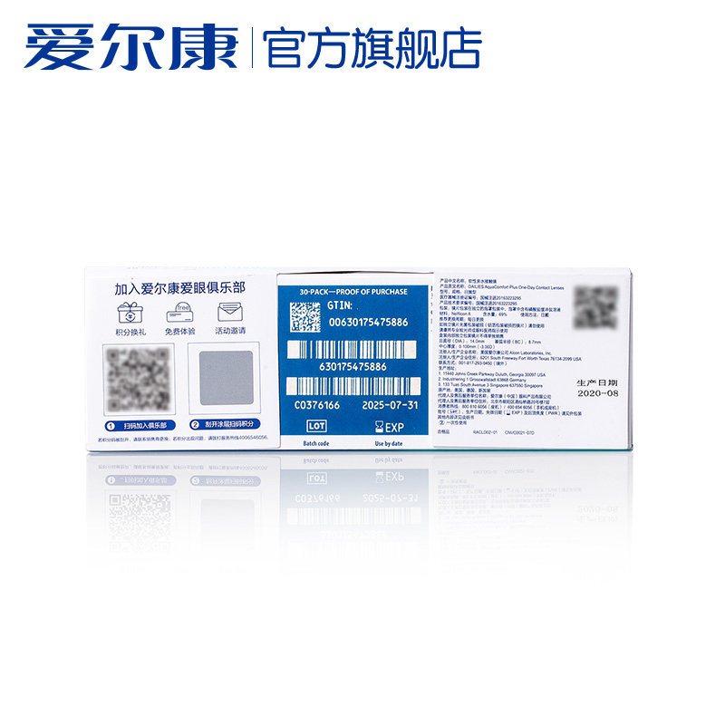 Alcon's official flagship store as Kondo Hydrating every day throws 60 boxes of contact lenses height number of contact lenses