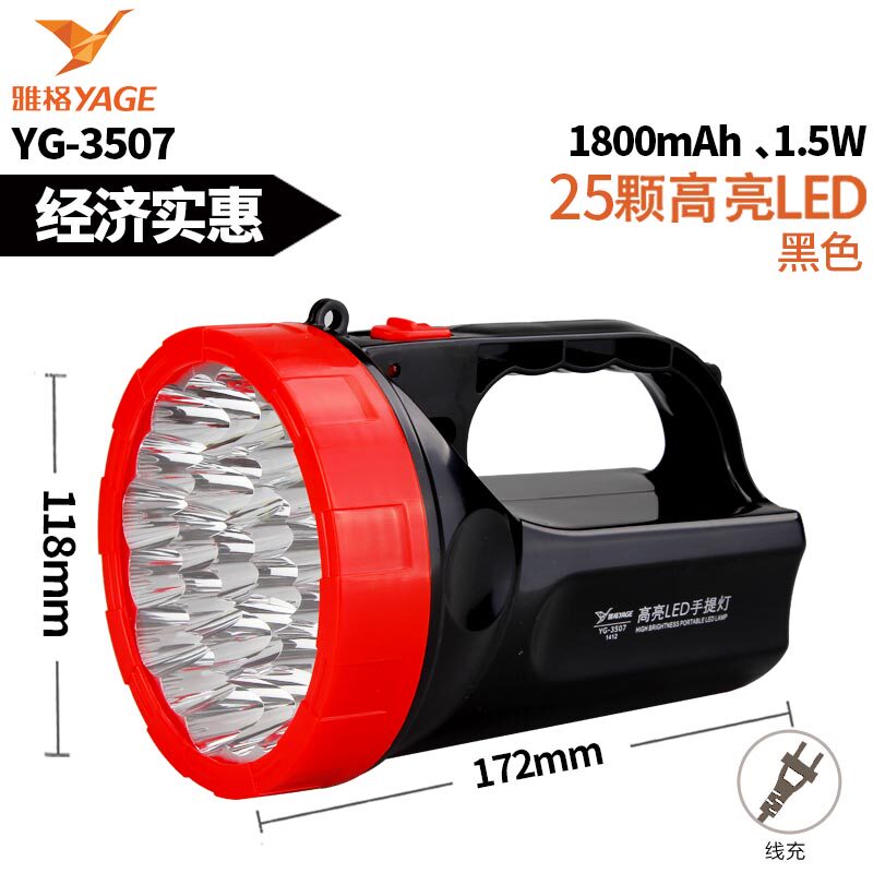 Yage bright emergency light Rechargeable lithium LED flashlight Portable light Searchlight Outdoor emergency light 3507