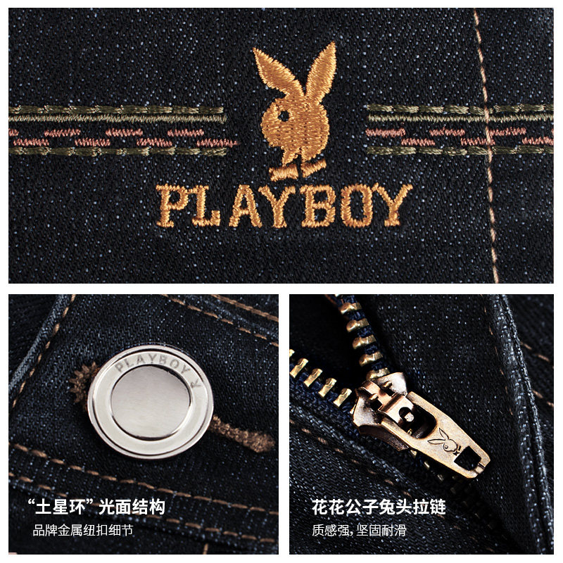 Playboy young and middle-aged men's jeans loose straight business casual spring and autumn large size elastic long pants