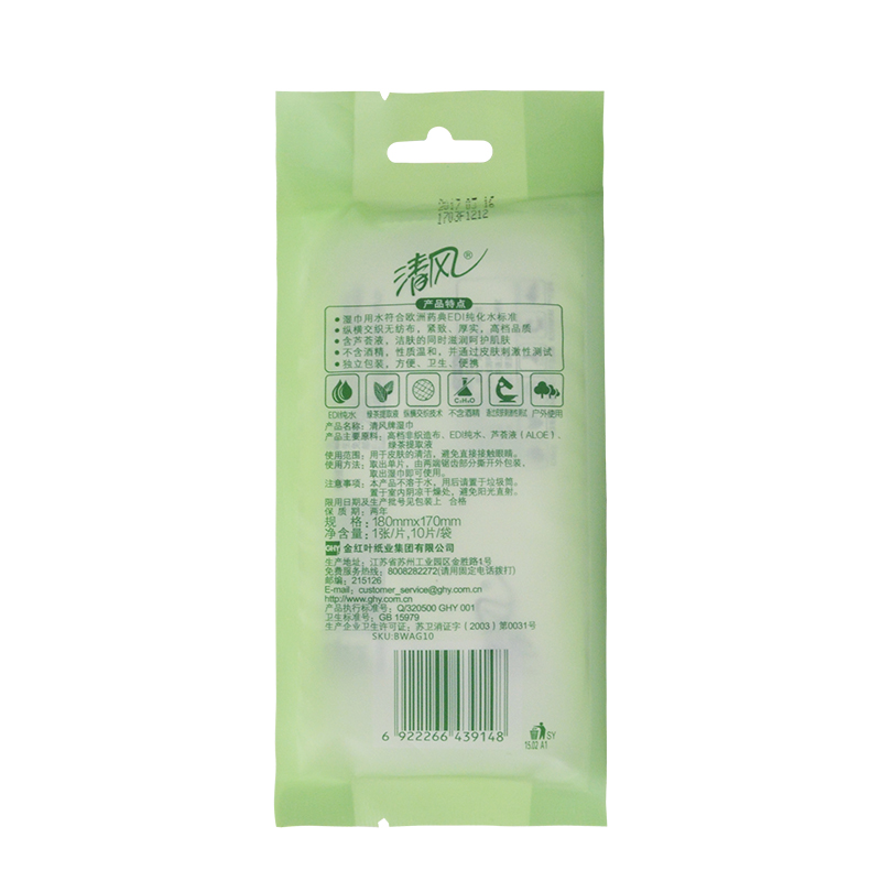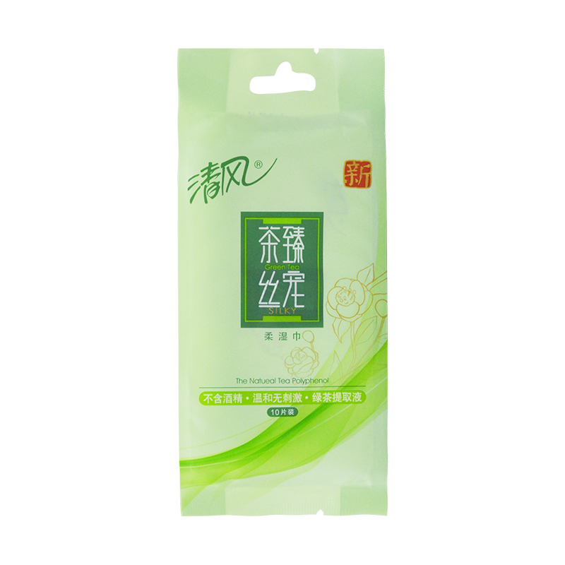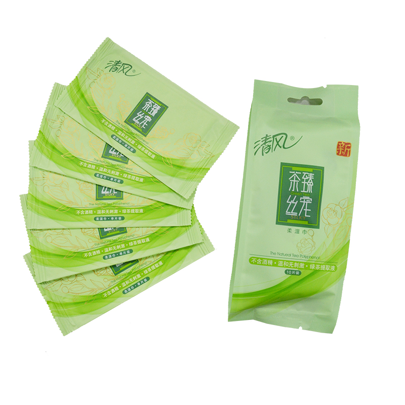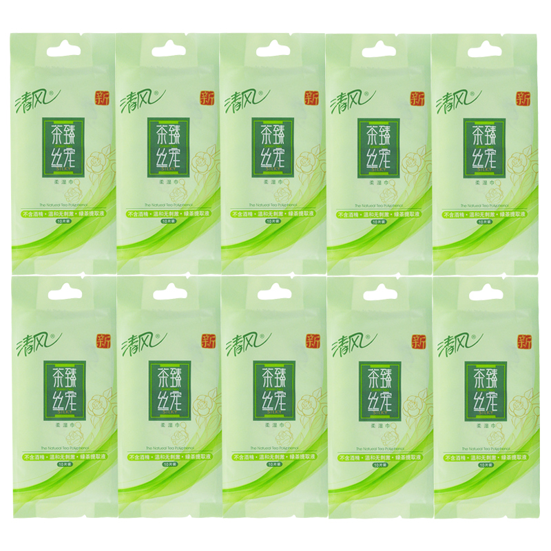 Qingfeng Tea Zhen Si Pet wipes Green tea flavor 10 packs of a total of 100 individually packaged portable packet wet wipes