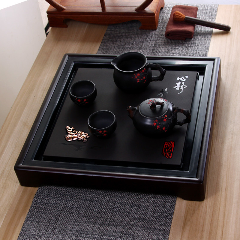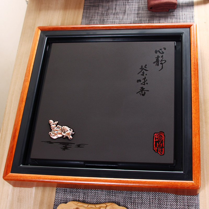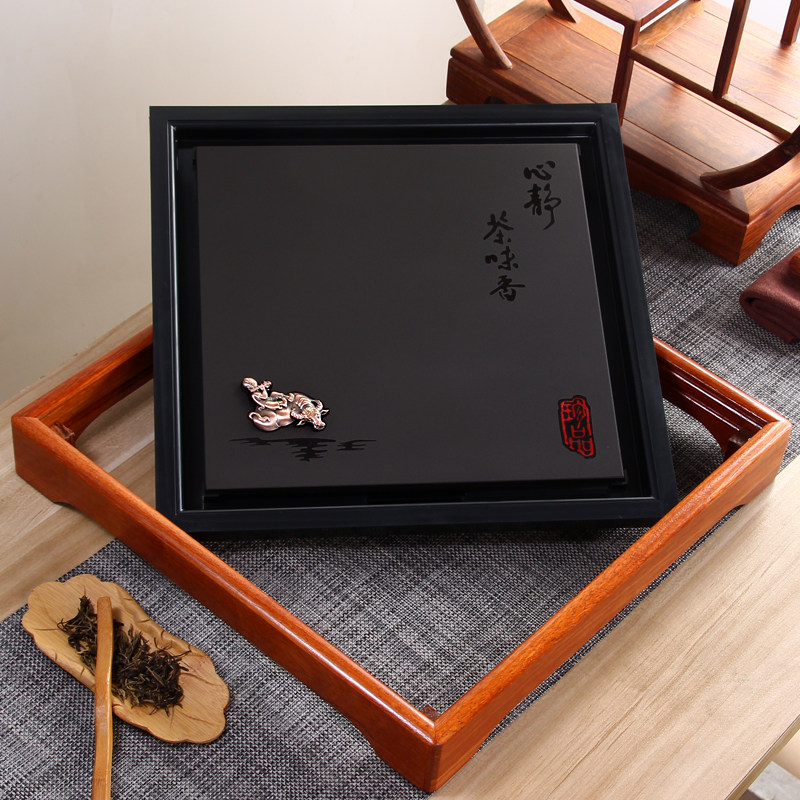 Square drainage tea tray Simple stone tea table Solid wood tea tray Tea sea Mahogany household tea boat