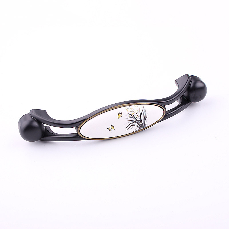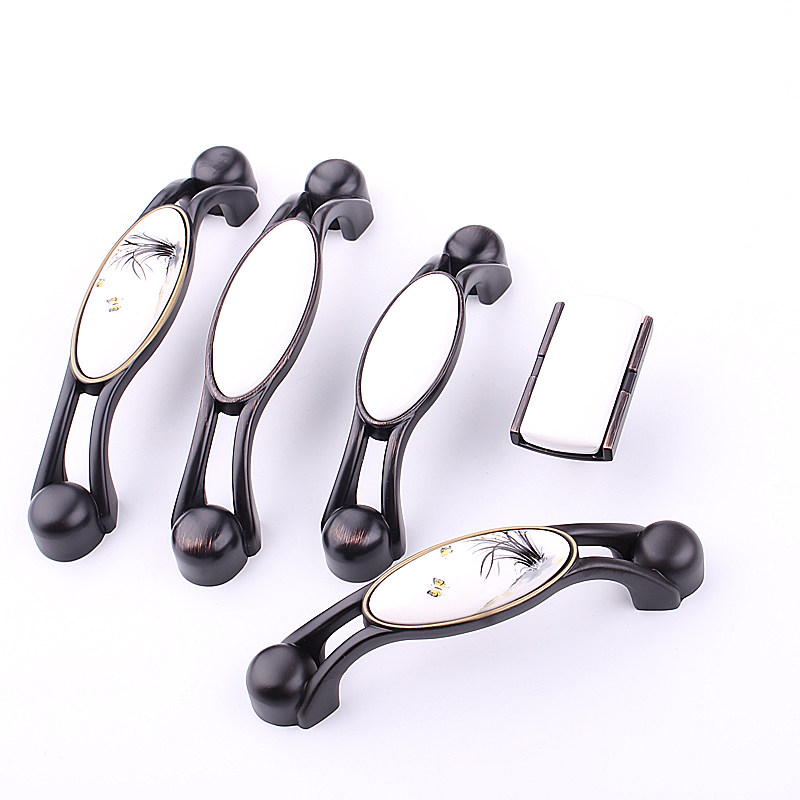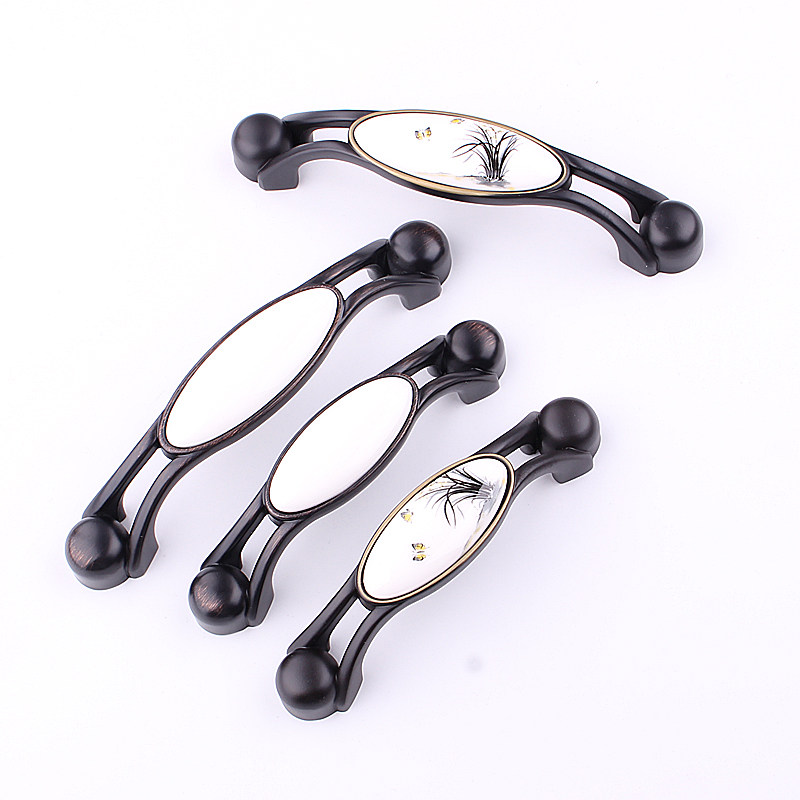 Tanyuan Black white ceramic handle Chinese American style cabinet door European-style wire drawing pull handle overall cupboard drawer wardrobe door handle