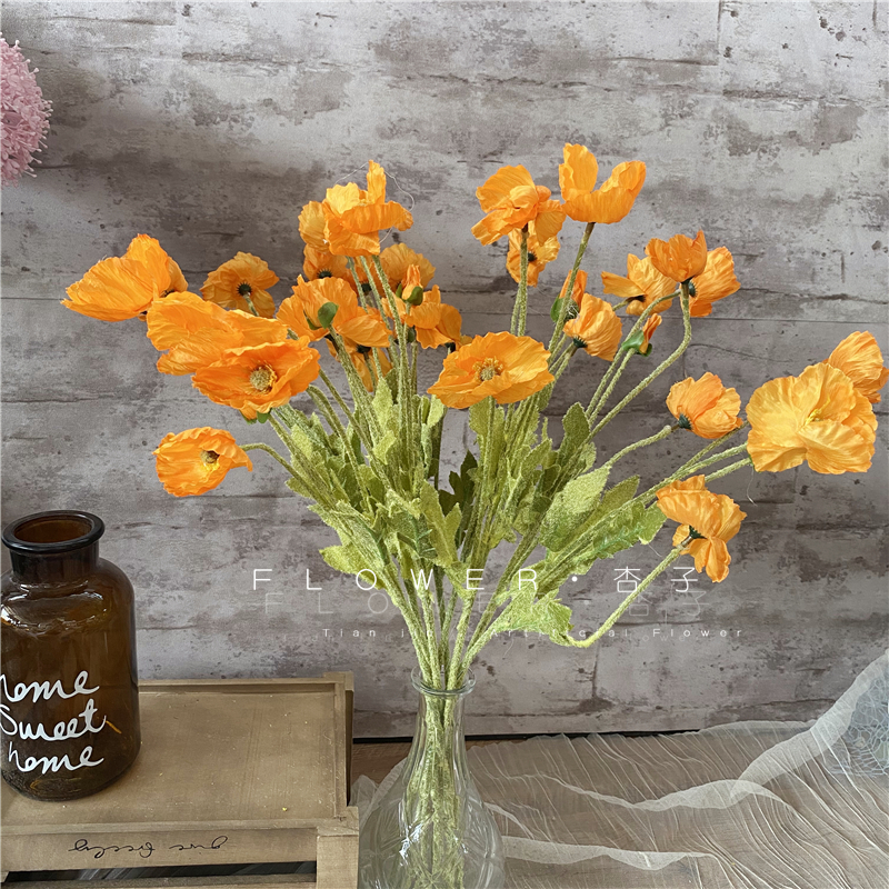 Flocking Yumei simulation flower wedding poppy flower photography photo props flower window decoration homestay decoration fake flower