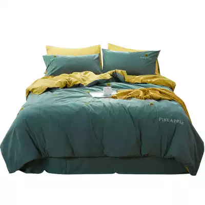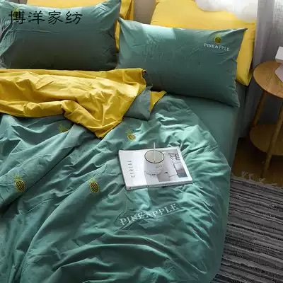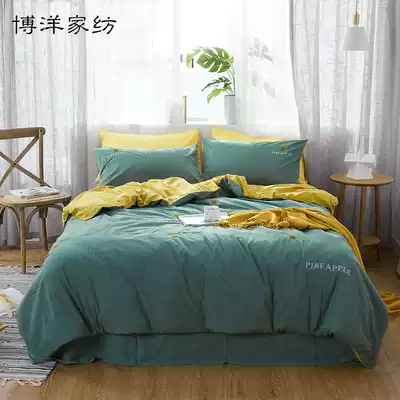Boyang home textile new product washed cotton four-piece set Cotton pure cotton simple embroidery summer quilt cover bed single bed
