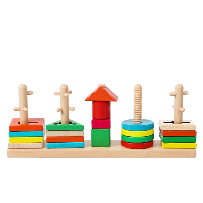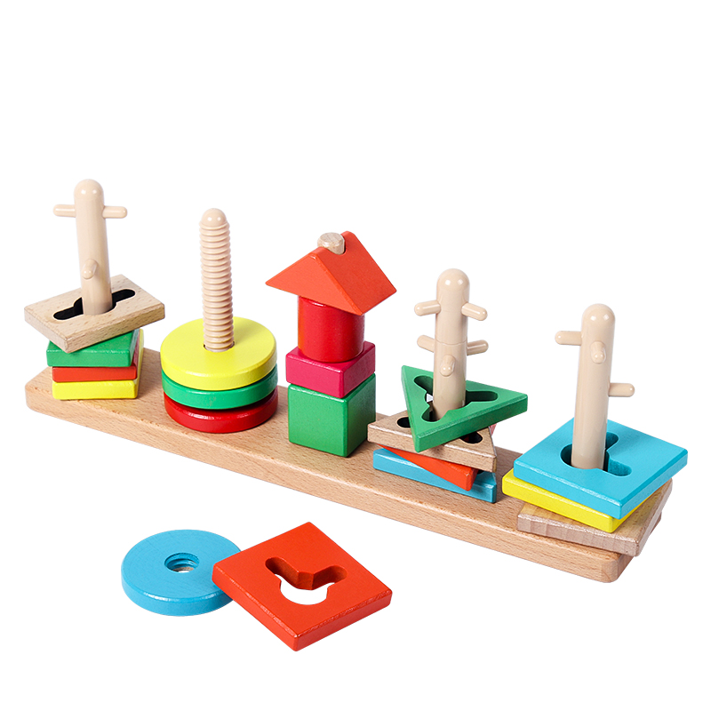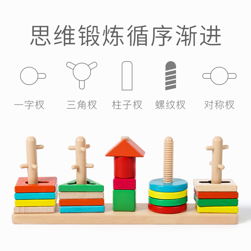 Montessori early education puzzle force toy Geometric shape matching building blocks 2 Baby color cognition Five sets of columns 1-3 years old