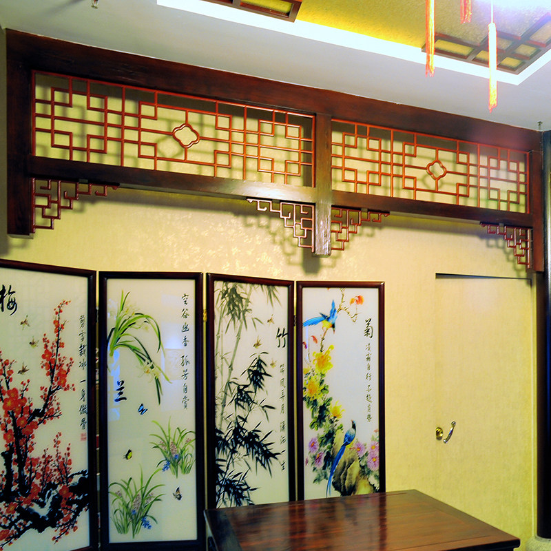 Hanging Fall Temple Door Lintel custom Chinese retro solid wood flower lattice imitation ancient door and window screen partition angle flower Xuan guan wood carving