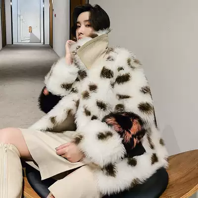 KC family celebrity wind bobcat pattern Missouri wool fur one winter new fur coat coat coat