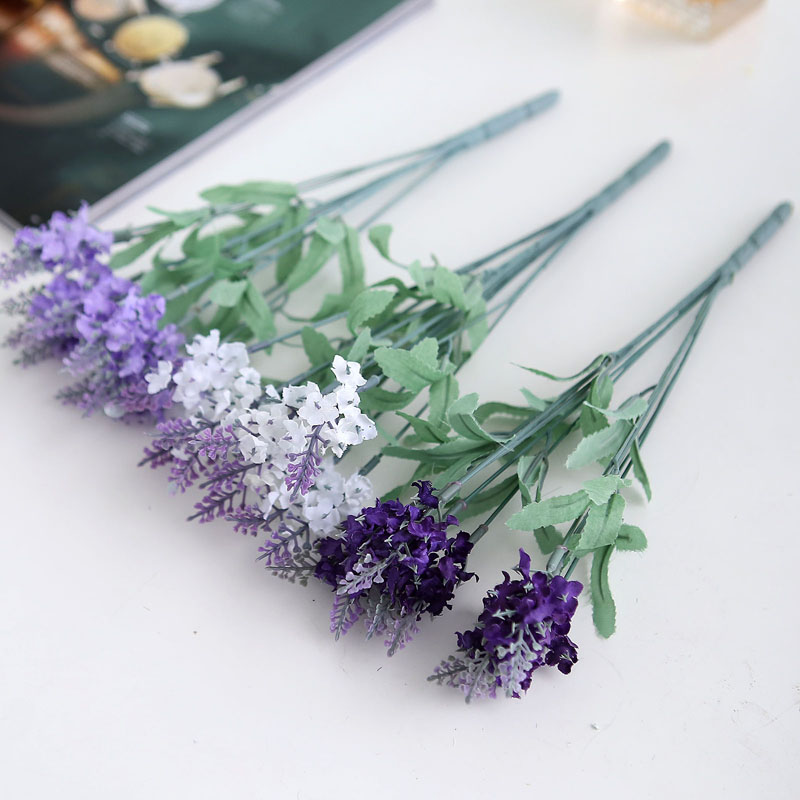 Silk flower drying flower plastic fake flower living-room floral bouquet decoration flower emulation flower 10 head lavender field garden fence