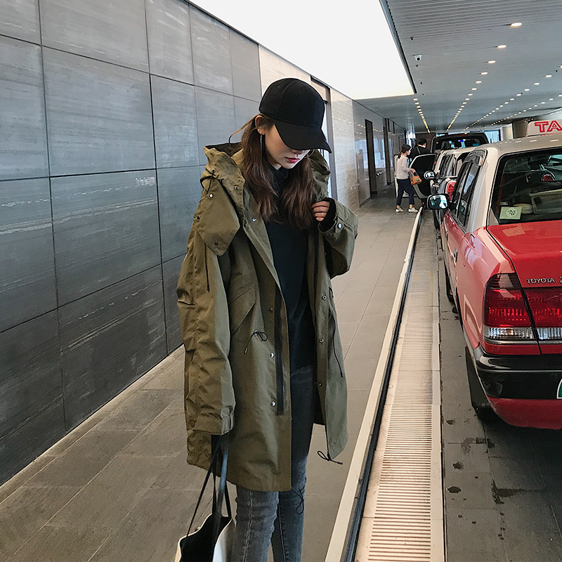 Army green windbreaker women's 2021 new mid-length popular coat Korean version loose tooling cotton coat cotton coat trendy