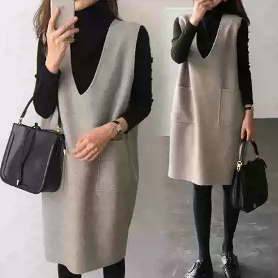 Pregnant women's spring and autumn fashion suit woolen pregnant women's dress autumn and winter Net red vest skirt two-piece set