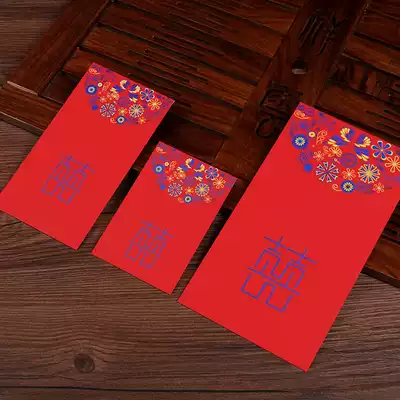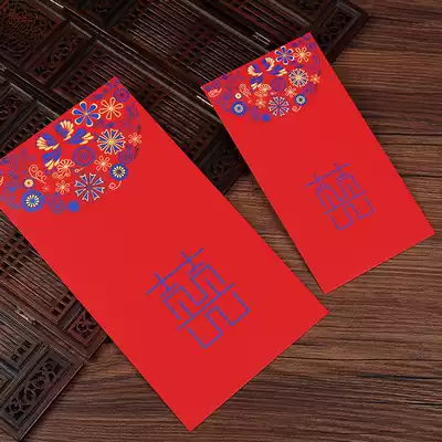 Wedding wedding red envelope Bride wedding profit seal small red envelope create blue star creative high-end double happiness custom red envelope bag
