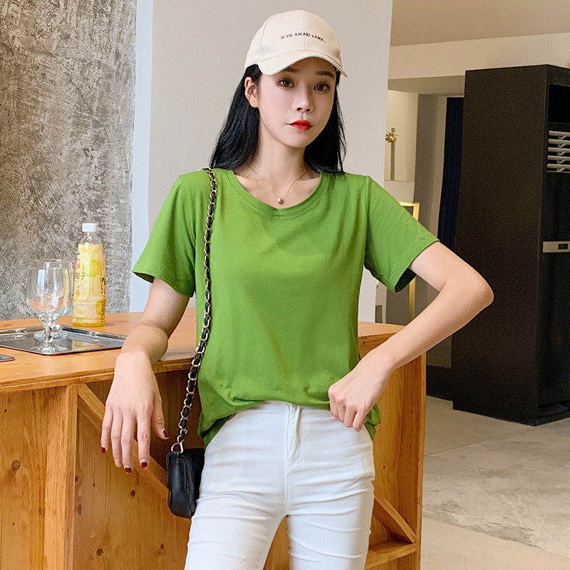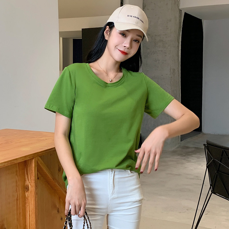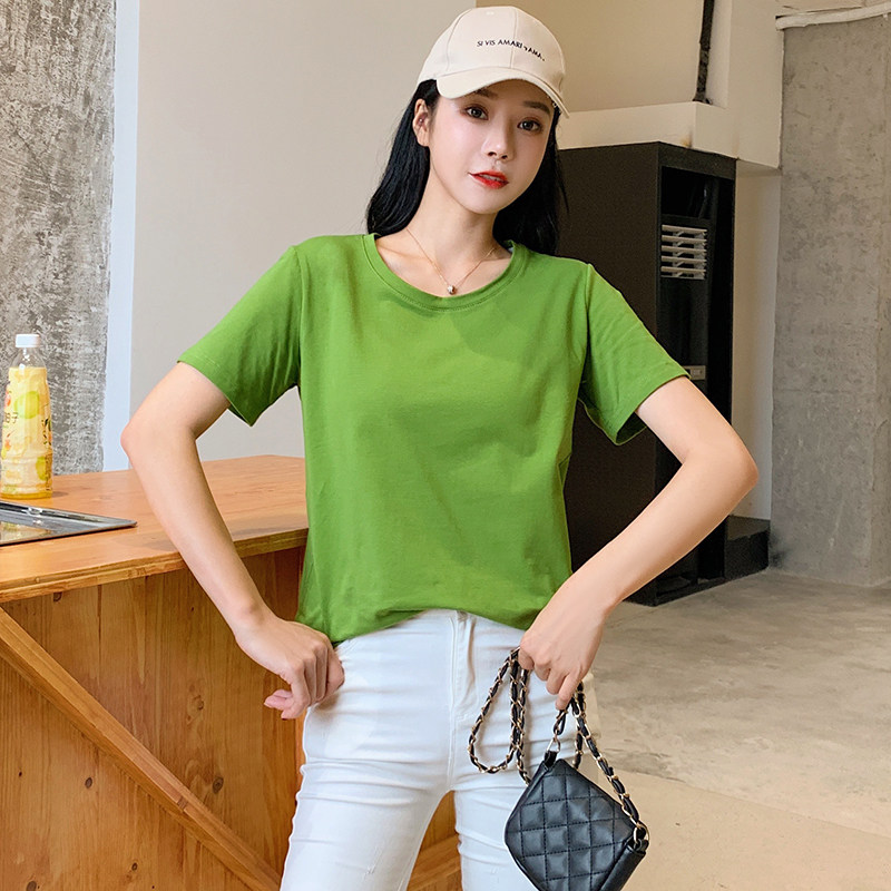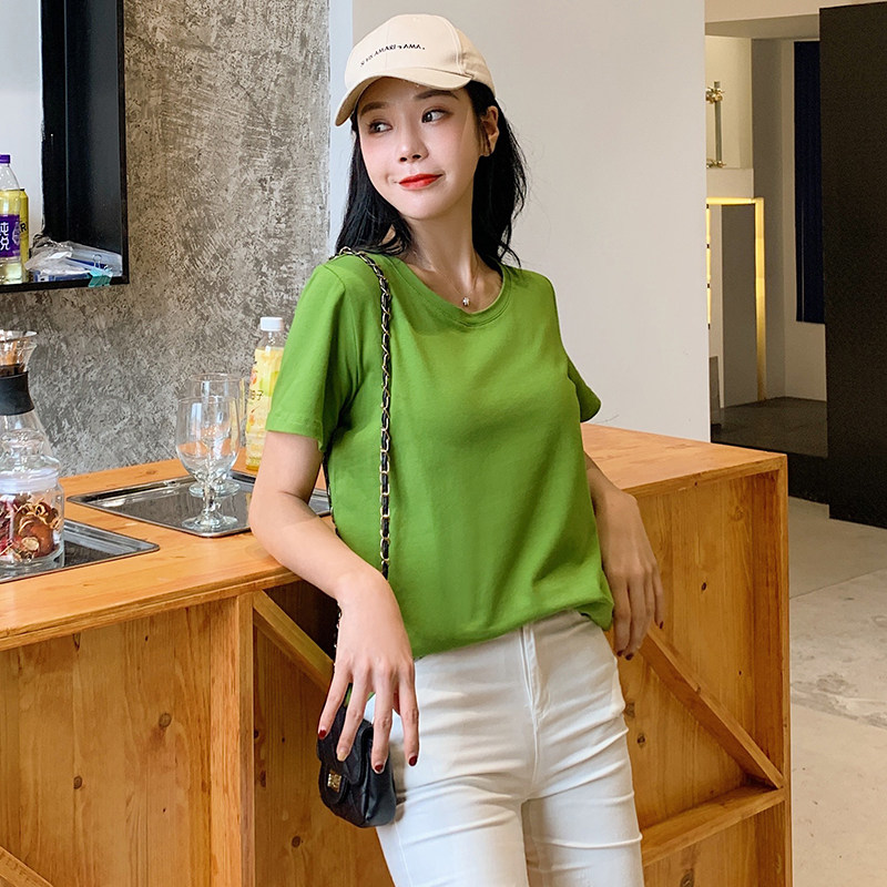 Lovers' dress with summer clothes short sleeves T-shirt women's butter fruits green pure cotton Korean version easy and small crowd design feel the undershirt