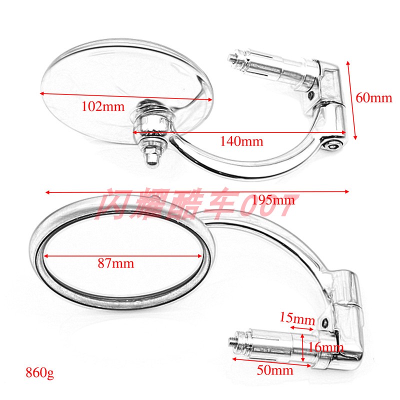Silver round bending rod handlebar mirror pair of silver trapezoidal bending rods handlebar mirror pair